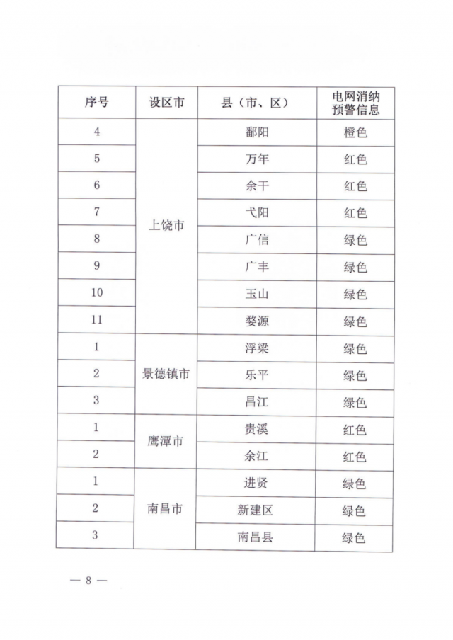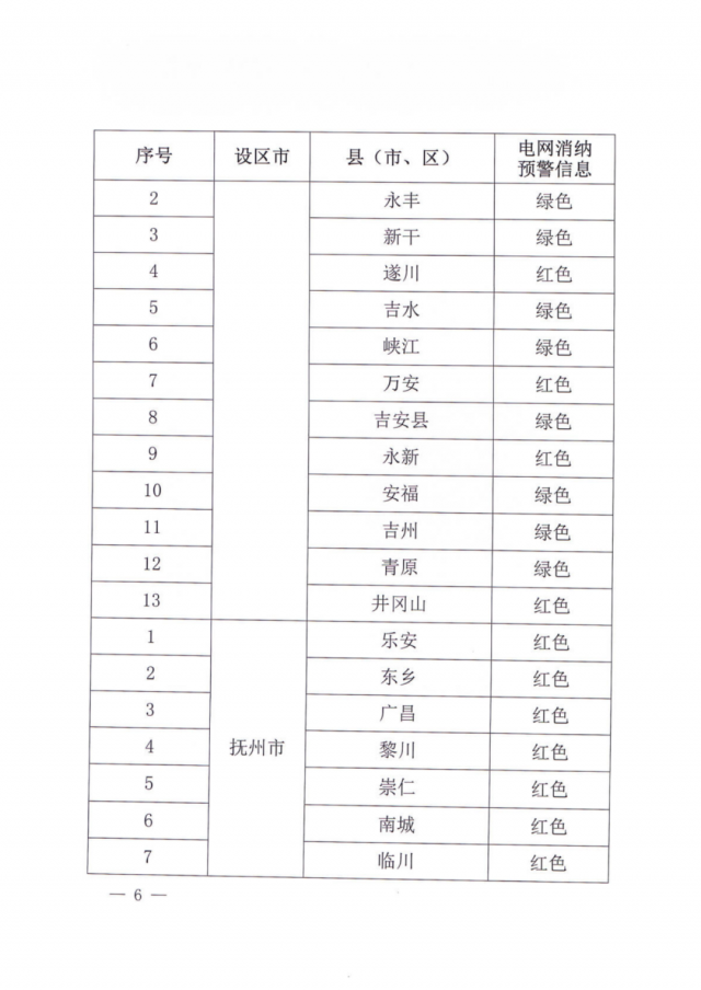 文件指出,由于新能源可開(kāi)發(fā)容量呈現(xiàn)飽和狀態(tài),故給出部分市縣電網(wǎng)新能源可開(kāi)放容量表。江西的94個(gè)縣市區(qū)中,已經(jīng)有27個(gè)電網(wǎng)消納預(yù)警信息為紅色,12個(gè)為橙色。