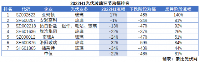 在負(fù)收益的環(huán)節(jié)中,缺少業(yè)績支撐且技術(shù)層面相對穩(wěn)定的支架、光伏玻璃、膠膜等環(huán)節(jié)整體跌幅居前,這三個環(huán)節(jié)中僅有亞瑪頓一家光伏玻璃個股實現(xiàn)正收益,其它14只標(biāo)的全部為負(fù)收益。