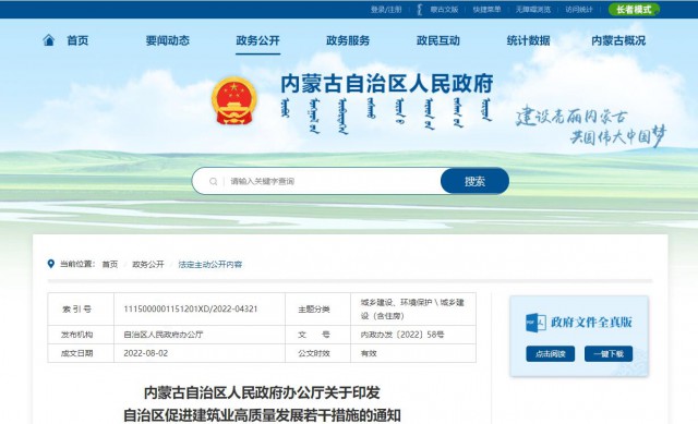 8月5日,內(nèi)蒙古自治區(qū)人民政府辦公廳印發(fā)關(guān)于自治區(qū)促進(jìn)建筑業(yè)高質(zhì)量發(fā)展若干措施的通知,措施提出大力發(fā)展裝配式建筑、綠色建筑、超低能耗建筑。將裝配式建筑產(chǎn)業(yè)基地(園區(qū))納入自治區(qū)重點(diǎn)示范園區(qū)范圍,享受新型工業(yè)化示范園區(qū)相關(guān)政策。裝配式部品部件生產(chǎn)基地按照工業(yè)用地政策提供用地支持。