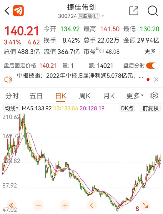 而此次減持計劃披露前,捷佳偉創(chuàng)股價走勢似乎復制了一年前的情況。在今年4月26日股價達到最低點47.02元/股之后,捷佳偉創(chuàng)股價便一路上揚。截至10日收盤,其股價達到140.21元/股,較4月底最低股價漲幅達198.19%。
