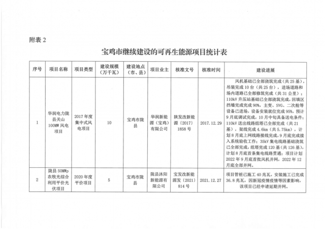 2.渭南市繼續(xù)建設(shè)的可再生能源項目統(tǒng)計表