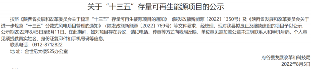 近日,陜西多個地區(qū)發(fā)布《關(guān)于梳理“十三五”存量可再生能源項目的通知》,包括寶雞市、府谷縣、洋縣、咸陽市、西安市、渭南市。