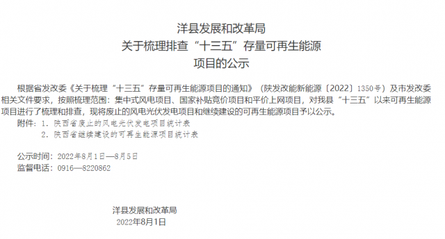 根據(jù)省發(fā)展改革委《關(guān)于梳理“十三五”存量可再生能源項目的通知》(陜發(fā)改能新能源〔2022〕1350號)文件要求,現(xiàn)將我市擬上報省發(fā)改委“十三五”風(fēng)電、光伏發(fā)電項目建設(shè)有關(guān)情況予以公示。公示自發(fā)布之日起5個工作日,如有意見和建議,請向渭南市發(fā)展和改革委員會反映,反映方式以來人或署名來信(包括電子信函),對匿名方式提出異議的不予受理。