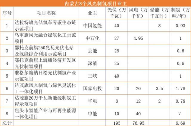 根據(jù)項(xiàng)目及資料查詢顯示,上述項(xiàng)目的主要投資業(yè)主分別為中國(guó)氫能、中石化、京能、深能、三峽、國(guó)家電投、華電以及申能等企業(yè)。具體項(xiàng)目情況見下: