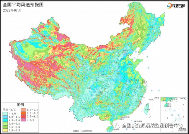 附圖1 全國(guó)2022年7月平均風(fēng)速分布預(yù)報(bào)圖