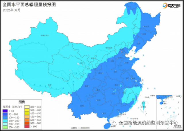 附圖4 全國(guó)2022年8月水平面總輻照量預(yù)報(bào)圖