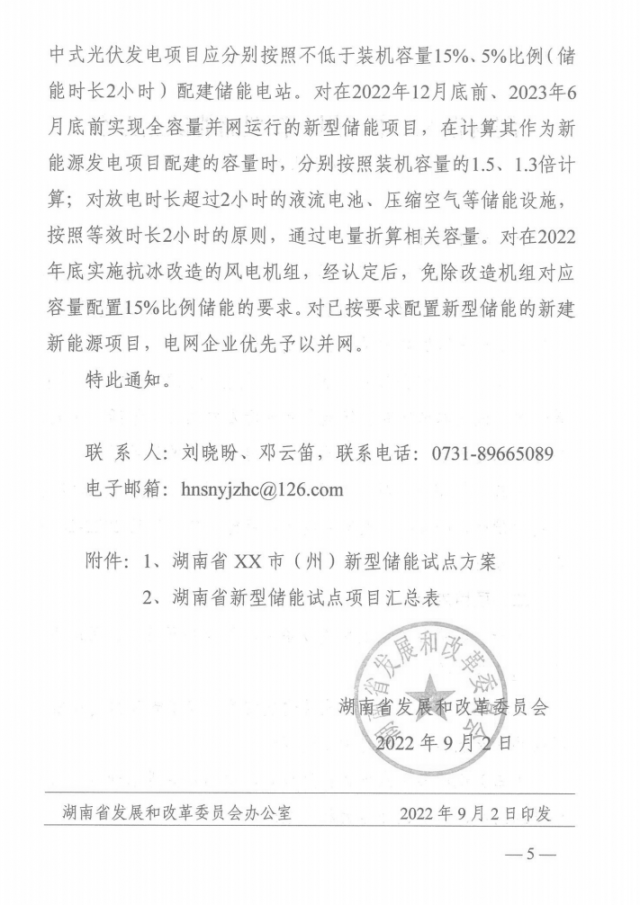 日前,湖南省發(fā)展和改革委員會(huì)發(fā)布《關(guān)于開展2022年新能源發(fā)電項(xiàng)目配置新型儲(chǔ)能試點(diǎn)工作的通知》。
