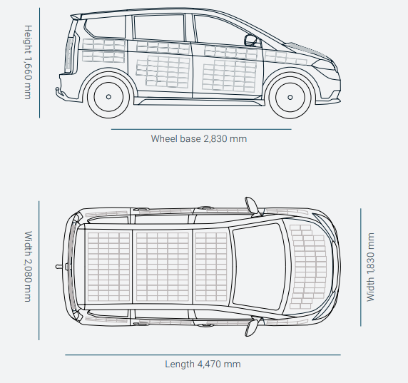 Sion配置了一個54 kWh的LFP電池組。電池并不大。但是這款車還有后招來確保續(xù)航里程。Sion的發(fā)動機(jī)罩,擋泥板,側(cè)面,車頂和車輛后部裝有太陽能電池。456個太陽能半電池和整個車身融合。這就是這款車的特別之處。Sono Motors表示這些半電池每周可增加112-245公里的續(xù)航里程。平均每天可以增加16-35公里。Sono Motors表示,如果這款車在德國市區(qū)使用,充電量是同一細(xì)分市場的傳統(tǒng)電動汽車的四分之一。