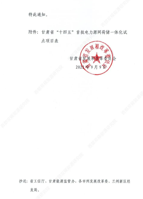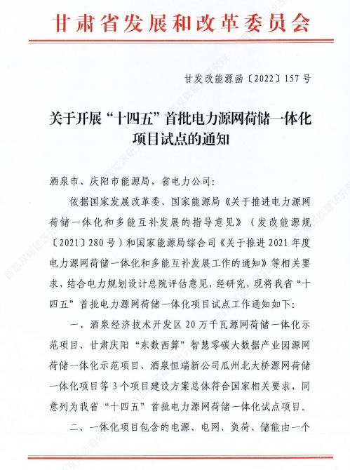 9月9日,甘肅省發(fā)改委印發(fā)《關(guān)于開展“十四五”首批電力源網(wǎng)荷儲一體化 項目試點的通知》。