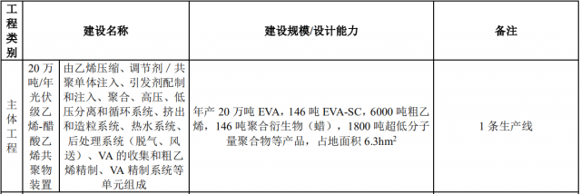 項(xiàng)目名稱:20 萬噸/年光伏級(jí)乙烯-醋酸乙烯共聚物項(xiàng)目、公用工程及輔助設(shè)施項(xiàng)目;