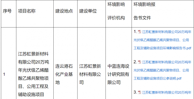 9月16日,江蘇虹景新材料有限公司(以下簡(jiǎn)稱” 虹景公司”)20萬噸年光伏級(jí)乙烯醋酸乙烯共聚物項(xiàng)目、公用工程及輔助設(shè)施項(xiàng)目進(jìn)行環(huán)評(píng)報(bào)告書受理公示。根據(jù)企查查顯示,虹景公司為東方盛虹旗下斯?fàn)柊钍Y控股子公司。