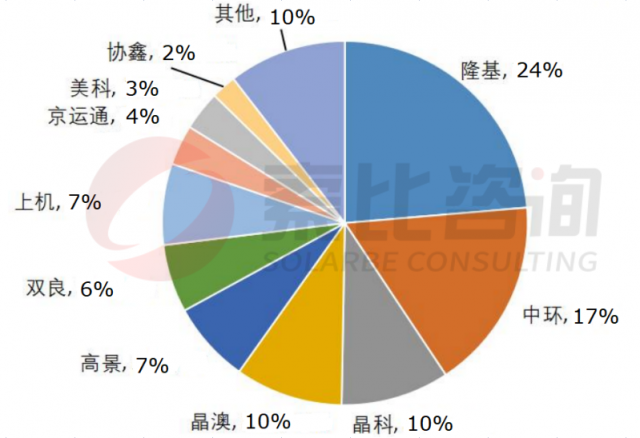 圖:2022年8月中國光伏硅片生產(chǎn)企業(yè)產(chǎn)出份額