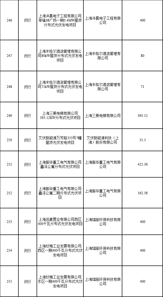 居民光伏8個。經青浦區(qū)發(fā)展改革委申請核實,(1)“上海市青浦區(qū)趙巷鎮(zhèn)業(yè)煌路168弄173號(2017年第二批)”用戶名從“孫仟花”變更為“侯笑宇”;(2)“上海市青浦區(qū)趙巷鎮(zhèn)業(yè)前路1688弄446號(2019年第一批)”用戶名從“宋厚波”變更為“王花”;(3)“上海市青浦區(qū)徐涇鎮(zhèn)滬青平公路1638弄156號(2018年第一批)”用戶名從“劉喜芝”變更為“夏永玲”;(4)“上海市青浦區(qū)朱家角鎮(zhèn)浦祥路581弄1801號(2019年第一批)”用戶名從“沈瓊”變更為“金紀寧”;(5)“上海市青浦區(qū)青浦鎮(zhèn)新園路509弄32號301室(2015年第一批)”用戶名從“趙林濤”變更為“周冠卿”;(6)“上海市青浦區(qū)趙巷鎮(zhèn)滬青平公路2558弄123號(2021年第一批)”用戶名從“田樹濤”變更為“TIANSHUTAO”;(7)“上海市青浦區(qū)趙巷鎮(zhèn)置發(fā)路68弄52號(2017年第三批)”用戶名從“方婷”變更為“陳芳”。經奉賢區(qū)發(fā)展改革委申請核實,(8)經奉賢區(qū)發(fā)展改革委申請核實,“上海市奉賢區(qū)海灣旅游區(qū)海馬路5888弄609號”用戶名從“蔣惠祥”變更為“印桂花”。