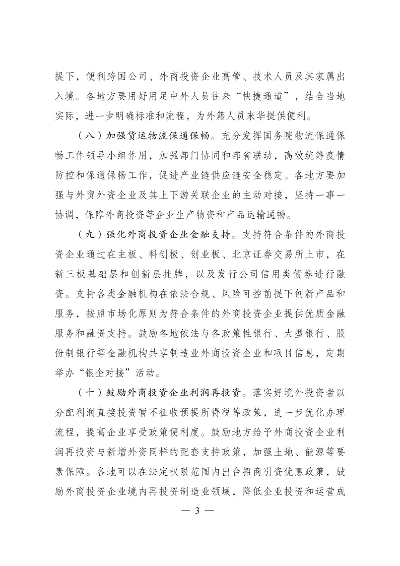 促進(jìn)外資擴(kuò)增量穩(wěn)存量提質(zhì)量的若干政策措施》的通知