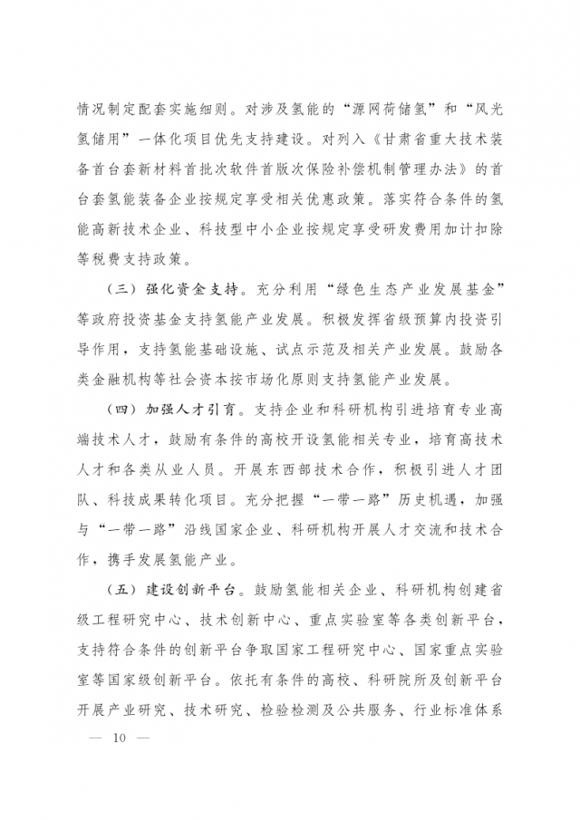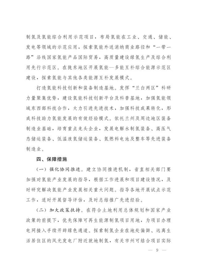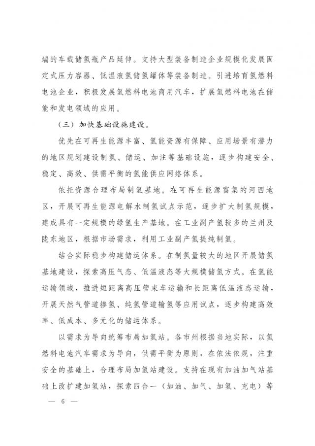 1月3日,甘肅省人民政府辦公廳發(fā)布關(guān)于氫能產(chǎn)業(yè)發(fā)展的指導(dǎo)意見,意見指出,支持在高速公路服務(wù)區(qū)內(nèi)布局建設(shè) “分布式光伏+制氫、儲(chǔ)氫、加氫”一體化示范應(yīng)用。培育 “風(fēng)光發(fā)電+氫儲(chǔ)能”一體化應(yīng)用模式,探索氫儲(chǔ)能與波動(dòng)性可再生能源發(fā)電協(xié)同運(yùn)行的商業(yè)化運(yùn)營(yíng)模式,對(duì)比研究氫儲(chǔ)能與電池儲(chǔ)能、熔鹽儲(chǔ)能等其他儲(chǔ)能方式單獨(dú)或混合儲(chǔ)能的技術(shù)特點(diǎn)和經(jīng)濟(jì)性。