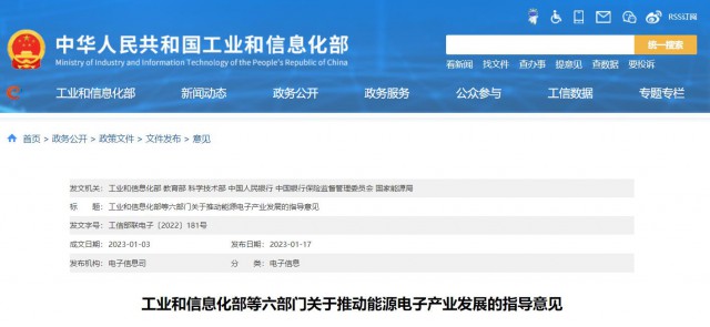 1月17日,工信部等六部門發(fā)布《關于推動能源電子產業(yè)發(fā)展的指導意見》(以下簡稱《意見》)。