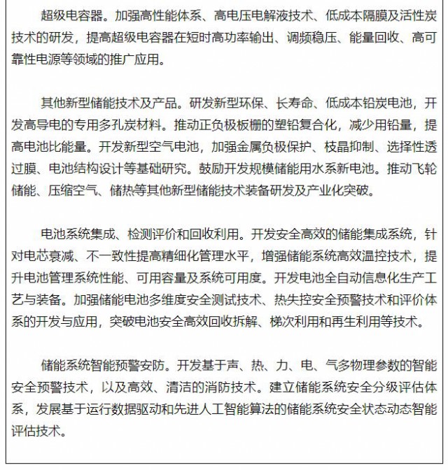 加強新型儲能電池產業(yè)化技術攻關,推進先進儲能技術及產品規(guī)?;瘧?。研究突破超長壽命高安全性電池體系、大規(guī)模大容量高效儲能、交通工具移動儲能等關鍵技術,加快研發(fā)固態(tài)電池、鈉離子電池、氫儲能/燃料電池等新型電池。推廣智能化生產工藝與裝備、先進集成及制造技術、性能測試和評估技術。提高鋰、鎳、鈷、鉑等關鍵資源保障能力,加強替代材料的開發(fā)應用。推廣基于優(yōu)勢互補功率型和能量型電化學儲能技術的混合儲能系統(tǒng)。支持建立鋰電等全生命周期溯源管理平臺,開展電池碳足跡核算標準與方法研究,探索建立電池產品碳排放管理體系。
