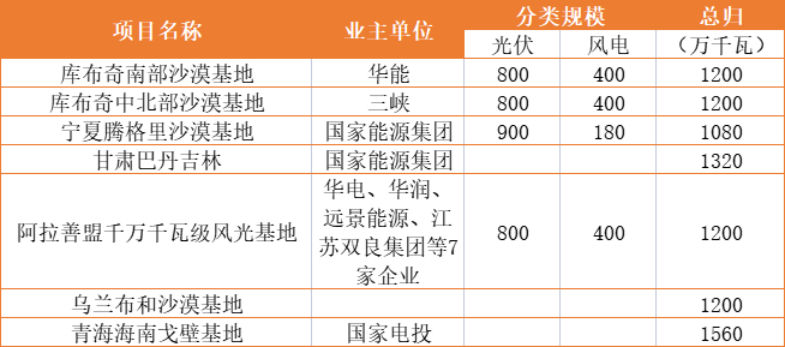 說明:上述數(shù)據(jù)通過公開信息整理,各企業(yè)數(shù)據(jù)存在未明確項目,具體以企業(yè)官方數(shù)據(jù)為準。此外,大基地存在聯(lián)合體業(yè)主,本表數(shù)據(jù)以牽頭企業(yè)為主。