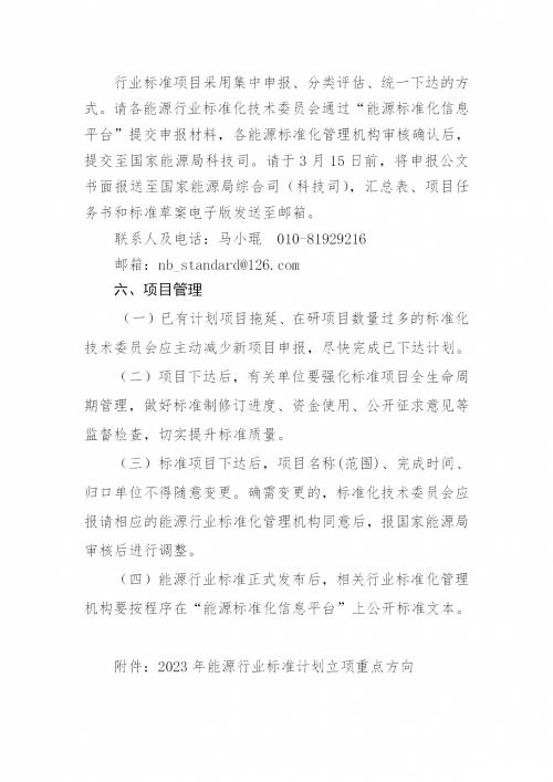 國家能源局綜合司關(guān)于印發(fā)《2023年能源行業(yè)標(biāo)準(zhǔn)計(jì)劃立項(xiàng)指南》的通知