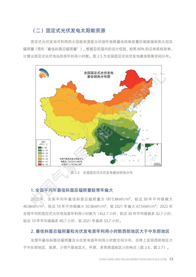 根據中國氣象局公布的《2022年中國風能太陽能資源年景公報》,太陽能資源每年都會發(fā)生變化。其中,2022年為太陽能資源大年,全國平均的年水平面總輻射量比近30年平均值高出約3%。因此,2022年的光伏發(fā)電量應該普遍偏好!