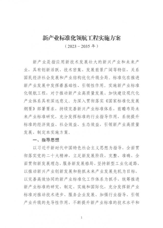 工業(yè)和信息化部等四部門關(guān)于印發(fā)《新產(chǎn)業(yè)標準化領航工程實施方案(2023─2035年)》的通知