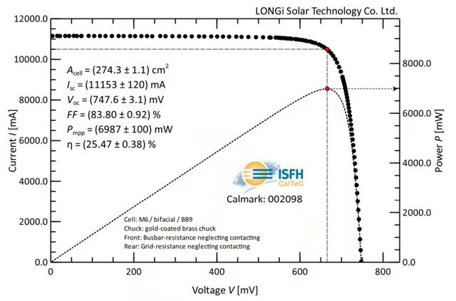 3月29日,經(jīng)德國哈梅林太陽能研究所(ISFH)認證,隆基采用摻鎵p型硅片制備的硅異質(zhì)結(jié)電池(p-HJT)獲得效率新突破:完全利用可量產(chǎn)工藝在全尺寸(M6尺寸,面積274.3cm)單晶硅片上,創(chuàng)造了轉(zhuǎn)換效率為25.47%的大尺寸p型光伏電池效率世界紀錄,進一步驗證了低成本異質(zhì)結(jié)量產(chǎn)技術(shù)的可行性。