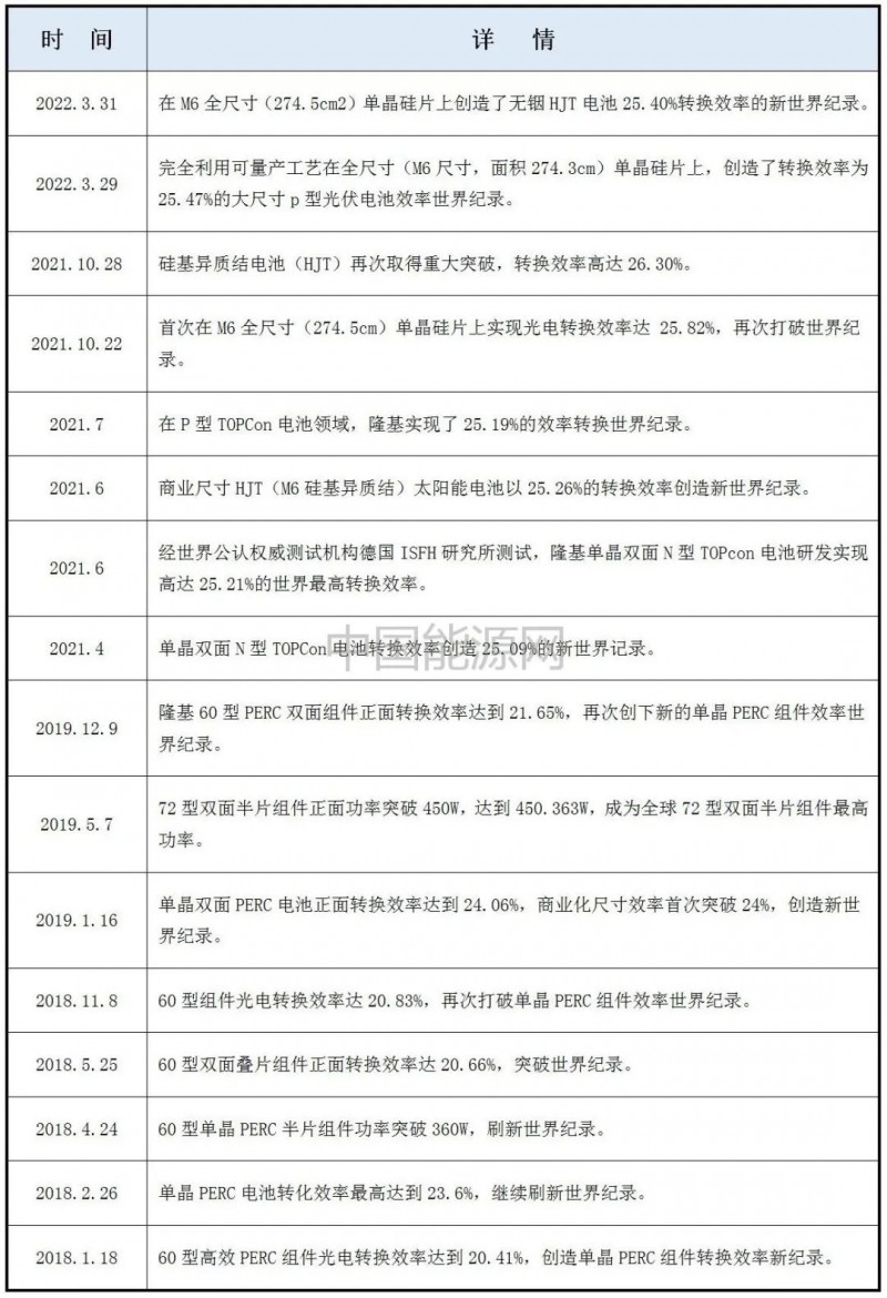 2018年至今,隆基組件轉(zhuǎn)換效率多次刷新世界紀錄,量產(chǎn)效率也在不斷攀升,表現(xiàn)出隆基以技術(shù)創(chuàng)新引領(lǐng)全球能源轉(zhuǎn)型的信心與決心。