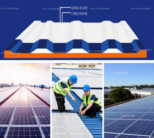 當(dāng)前,在國(guó)家及地方政府政策的大力支持下,分布式光伏發(fā)電系統(tǒng)的應(yīng)用已越來越廣泛,已成為未來光電的重要發(fā)展方向。對(duì)于附著在建筑物上的光伏系統(tǒng),光伏組件在屋面上的安裝方式,不僅要考慮日照和陰影,而且要因屋面形式而異。在工程上,組件的安裝必須考慮荷重、耐風(fēng)壓、抗地震、排水、防水以及防雷等問題。因?yàn)楣こ讨饕婕暗焦夥Ъ芘c屋面的結(jié)合,進(jìn)而涉及屋面防水問題,因此設(shè)計(jì)方案、工程施工質(zhì)量的優(yōu)劣,不僅關(guān)系到建筑物的使用壽命,而且直接影響到建筑內(nèi)的生產(chǎn)活動(dòng)或民生的正常進(jìn)行。目前,由于分布式光伏發(fā)電處于市場(chǎng)導(dǎo)入期,競(jìng)爭(zhēng)激烈,系統(tǒng)的設(shè)計(jì)、施工質(zhì)量良莠不齊,對(duì)所在工商業(yè)廠房金屬屋面的防水問題更應(yīng)予以重視。