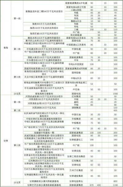 隨著相關(guān)各類信息的不斷披露,各個風(fēng)光大基地項(xiàng)目的業(yè)主單位也逐漸明確。