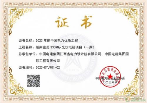 中國電力優(yōu)質工程代表我國電力行業(yè)最高工程質量水平,獲此榮譽彰顯了越南富美項目設計優(yōu)秀、管理科學、質量上乘、技術領先、節(jié)能環(huán)保、工藝精湛,綜合指標達到國內(nèi)同期、同類先進水平。