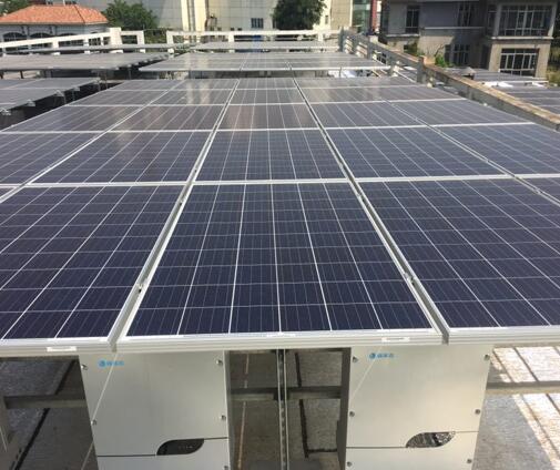 并網(wǎng)點(diǎn)就近380V接入電網(wǎng)。因屋頂周圍無承重墻,考慮逆變器的防護(hù),通風(fēng)及接線方便,最終確定逆變器掛在組件支架上的方案。