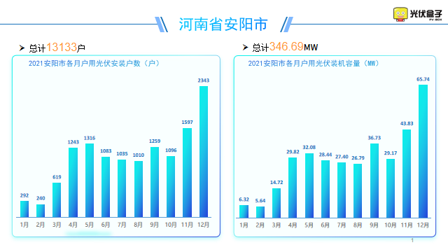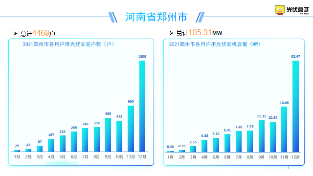 2021年河南省戶用光伏安裝了15.41萬(wàn)戶,12月份安裝戶數(shù)占全年的22.66%。