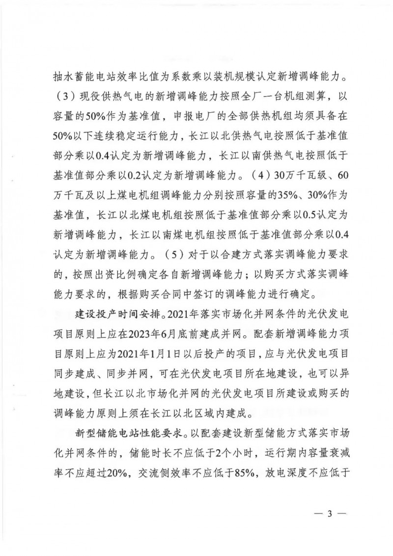 2021年落實(shí)市場(chǎng)化并網(wǎng)條件的光伏發(fā)電項(xiàng)目:原則上應(yīng)在2023年6月底前建成并網(wǎng)。配套新增調(diào)峰能力項(xiàng)目原則上應(yīng)為2021年1月1日以后投產(chǎn)的項(xiàng)目,應(yīng)與光伏發(fā)電項(xiàng)目同步建成、同步并網(wǎng),可在光伏發(fā)電項(xiàng)目所在地建設(shè),也可以異地建設(shè),但長(zhǎng)江以北市場(chǎng)化并網(wǎng)的光伏發(fā)電項(xiàng)目所建設(shè)或購(gòu)買的調(diào)峰能力原則上須在長(zhǎng)江以北區(qū)域建成。