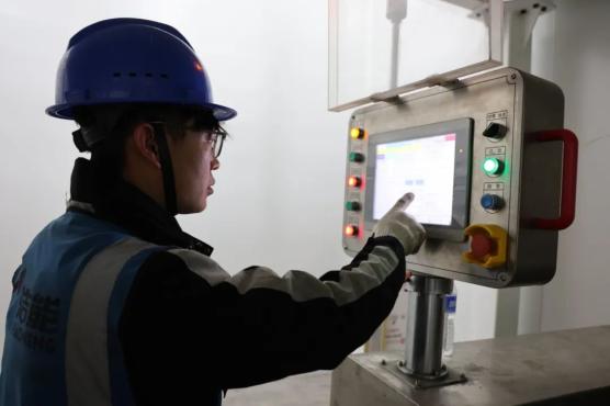 12GW高性能鋰離子儲能電池項目現(xiàn)場,工作人員正在調(diào)試設(shè)備。趙菠攝