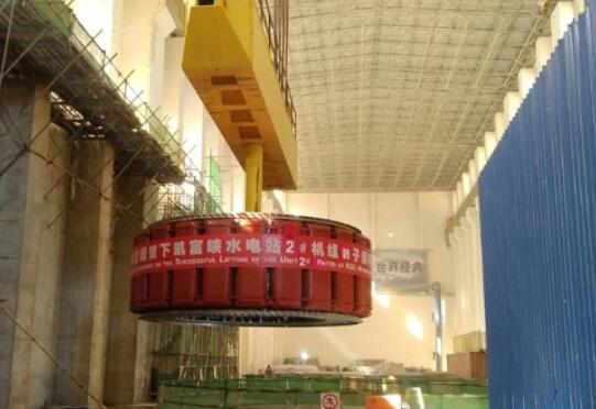 贊比亞下凱富峽水電站2號(hào)機(jī)組轉(zhuǎn)子成功吊裝