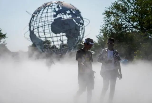 美國紐約科羅納公園水霧廣場(2021年8月13日攝)。新華社記者 王迎 攝