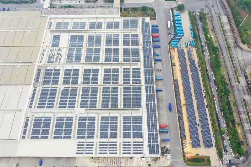 依托由廣東能源集團所屬開發(fā)公司投資建設的柳汽光伏電站,東風柳州汽車有限公司(以下簡稱“東風柳汽”)從未因地區(qū)的限電令導致停產(chǎn)停工。柳汽光伏發(fā)電項目是目前廣西最大的分布式光伏發(fā)電項目,投產(chǎn)不到一年,已累計為東風柳汽提供超過1690萬度的綠色清潔電能,通過合理的調峰與調度,在柳州市限電的情況下,保障了東風柳汽兩個基地的有序生產(chǎn)。
