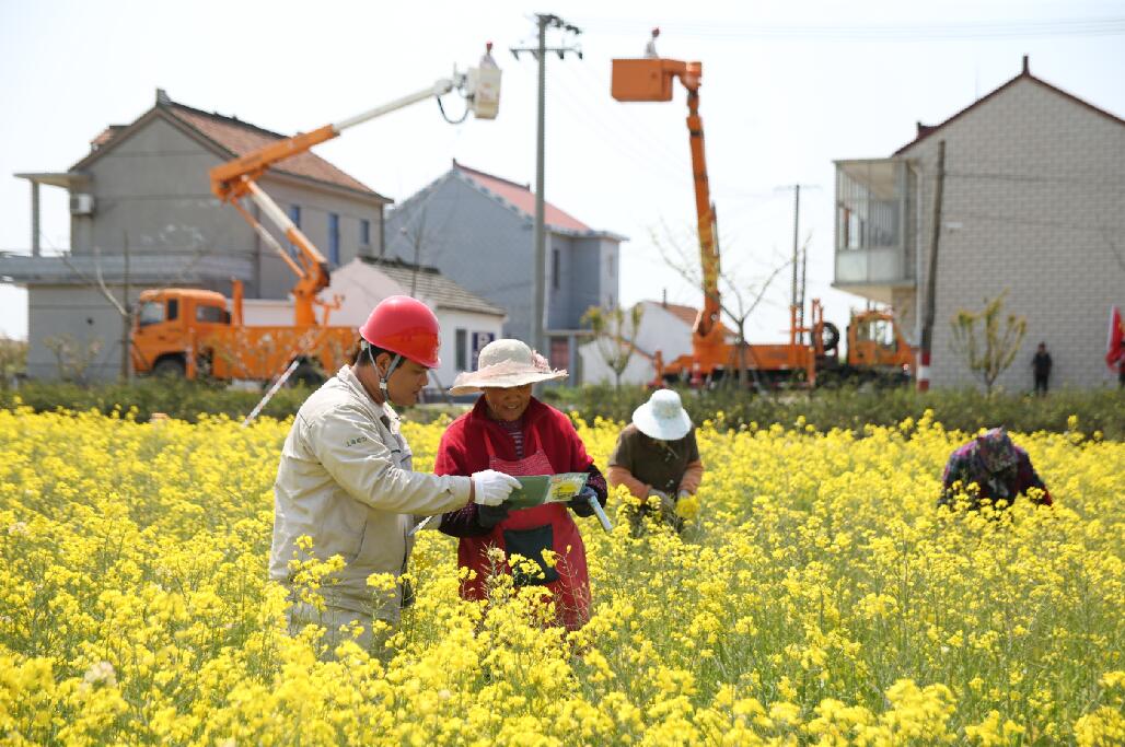 4月9日,在豐樂村開展不停電作業(yè)的長興供電公司,為當(dāng)?shù)剞r(nóng)民進(jìn)行用電安全的科普工作