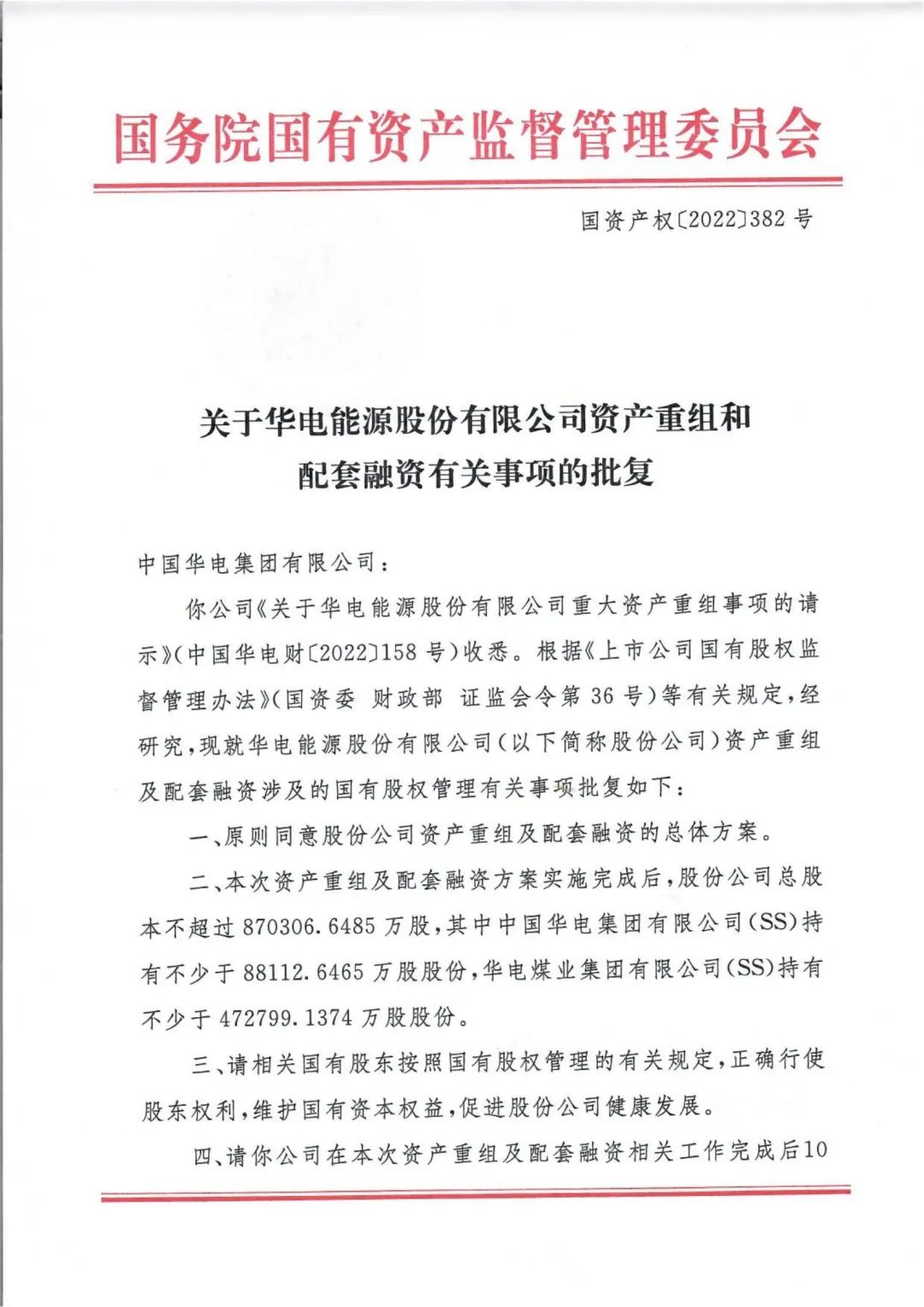 國資委批復(fù)華電能源資產(chǎn)重組方案