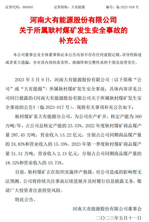河南大有能源連發(fā)公告↓