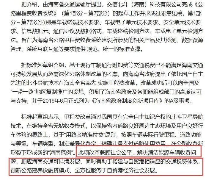 不過(guò)某些地方,已經(jīng)做出了積極的嘗試。譬如海南省,在近日出臺(tái)了《公路里程費(fèi)收費(fèi)系統(tǒng)》的征求意見(jiàn)。意見(jiàn)中,有關(guān)部門(mén)將針對(duì)新能源汽車(chē)“養(yǎng)路費(fèi)”問(wèn)題,展開(kāi)收費(fèi)模式的改進(jìn)探索。