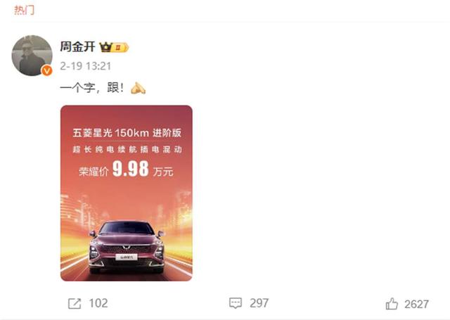 上汽通用五菱品牌事業(yè)部副總經(jīng)理周钘在微博表示跟進(jìn)降價(jià)