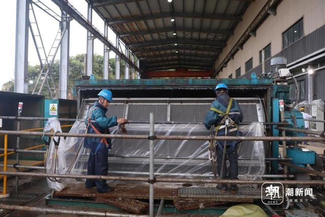 發(fā)電廠維護部副主任習超站在綠色長條型的旋轉濾網前,濾網共4個窗口,每個窗口前有工人駐守,他們從窗口伸手進去,拿走趴在濾網上的海蜇,再丟到腳下的袋子里。