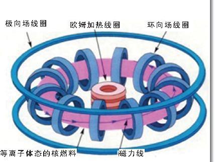 還有什么約束辦法嗎?因?yàn)榫圩冃枰蟽|度高溫,不能用任何容器盛裝,所以人類想到用強(qiáng)磁場(chǎng)把帶電粒子懸浮起來,即磁約束。