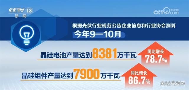 央視網消息:工業(yè)和信息化部12月13日發(fā)布當前全國光伏制造行業(yè)最新運行情況。數據顯示,今年9—10月,我國光伏制造業(yè)保持高位運行,硅料、硅片、電池、組件產量同比增長均超60%。