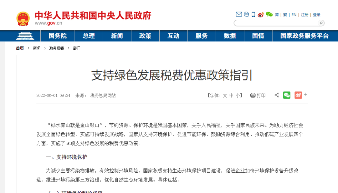 為著眼于國家碳達(dá)峰碳中和戰(zhàn)略部署,充分體現(xiàn)稅收對市場主體綠色低碳發(fā)展的促進(jìn)和激勵作用,國家稅務(wù)總局日前發(fā)布《支持綠色發(fā)展稅費(fèi)優(yōu)惠政策指引》,從支持環(huán)境保護(hù)、促進(jìn)節(jié)能環(huán)保、鼓勵資源綜合利用、推動低碳產(chǎn)業(yè)發(fā)展四個(gè)方面,實(shí)施了56項(xiàng)支持綠色發(fā)展的稅費(fèi)優(yōu)惠政策。