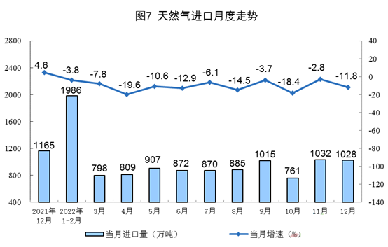 2022年,生產(chǎn)天然氣2178億立方米,同比增長(zhǎng)6.4%。進(jìn)口天然氣10925萬噸,同比下降9.9%。