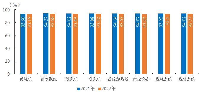 圖3 2021-2022年燃煤機(jī)組八類輔助設(shè)備可用系數(shù)