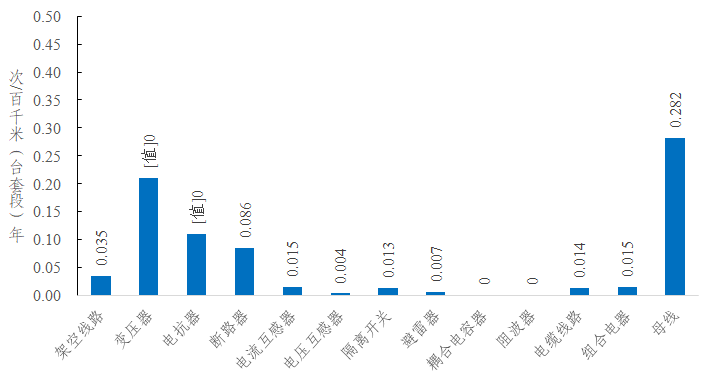 2022年,架空線路的強(qiáng)迫停運(yùn)率為0.035次/百千米年,同比減少0.011次/百千米年。變壓器的強(qiáng)迫停運(yùn)率為0.210次/百臺(tái)年,同比增加0.013次/百臺(tái)年。斷路器的強(qiáng)迫停運(yùn)率為0.086次/百臺(tái)年,同比減少0.088次/百臺(tái)年。