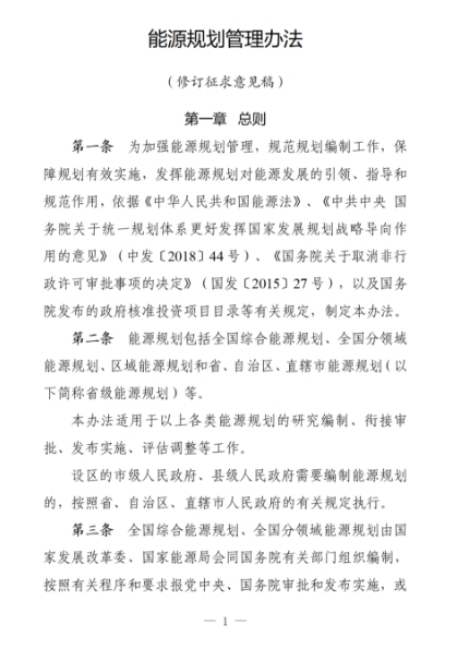 附件:能源規(guī)劃管理辦法(修訂征求意見稿)